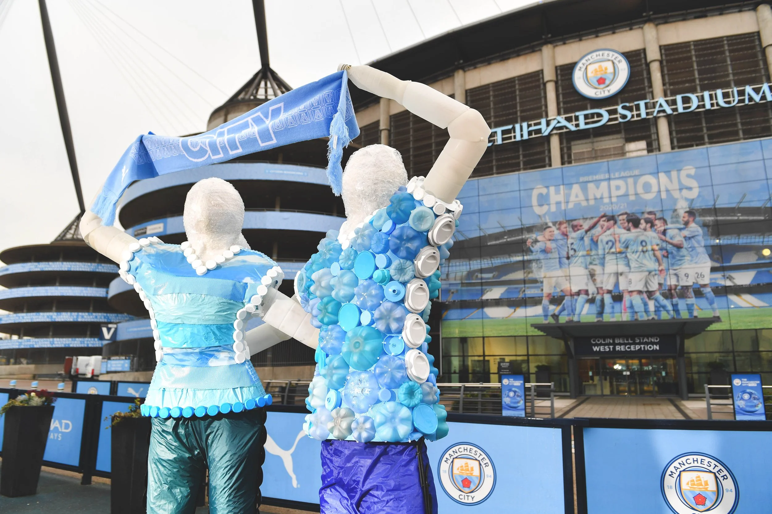 To kick-start the conversation on the use of plastics in football, we worked with an artist to create life-size reclaimed plastic waste sculptures of football fans and placed them outside Manchester City’s Etihad and Tottenham Hotspur’s stadiums on matchday.